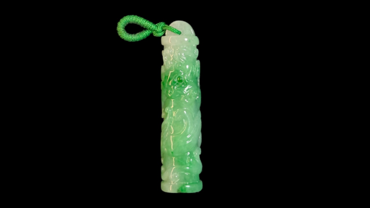 滿綠龍柱,種水好,色澤翠綠,雕工細緻。寓意節節高升,龍騰四海