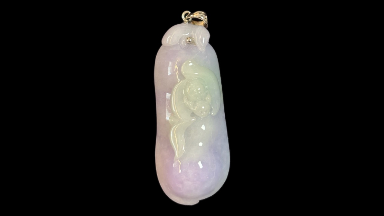 紫羅蘭春帶彩福豆,質地細嫩,雕工精緻。寓意福壽安康,連生貴子