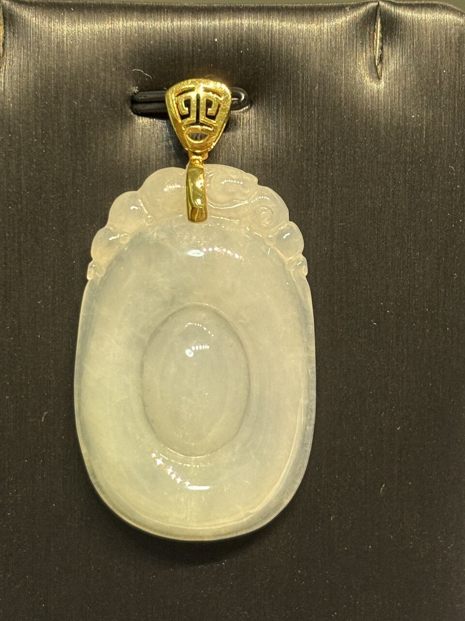 冰種白翡翠如意吊墜,種水通透,雕工精細,18K金扣頭,寓意吉祥如意